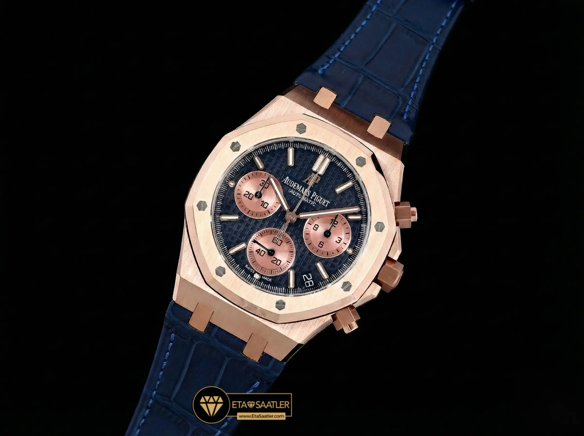 Audemars Piguet Royal Oak Chrono 26240 Rose Gold Blue Deri Super Clone ETA