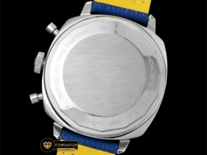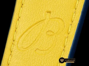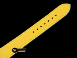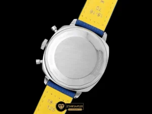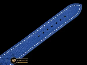 Motor sporları temasını kusursuzca tamamlayan en önemli detay, mavi renkli ve delikli (perfore) tasarıma sahip dana derisi kayıştır. Kontrast oluşturan beyaz dikişlerle süslenen bu kayış, retro yarış eldivenlerini andıran dokusuyla nefes alabilir ve son derece konforlu bir kullanım sunar. Orijinaline sadık kalınarak tasarlanan katlanır çelik toka ise güvenli bir tutuş sağlar.