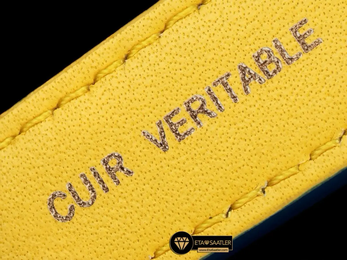 Motor sporları temasını kusursuzca tamamlayan en önemli detay, mavi renkli ve delikli (perfore) tasarıma sahip dana derisi kayıştır. Kontrast oluşturan beyaz dikişlerle süslenen bu kayış, retro yarış eldivenlerini andıran dokusuyla nefes alabilir ve son derece konforlu bir kullanım sunar. Orijinaline sadık kalınarak tasarlanan katlanır çelik toka ise güvenli bir tutuş sağlar.