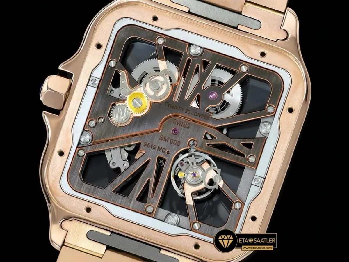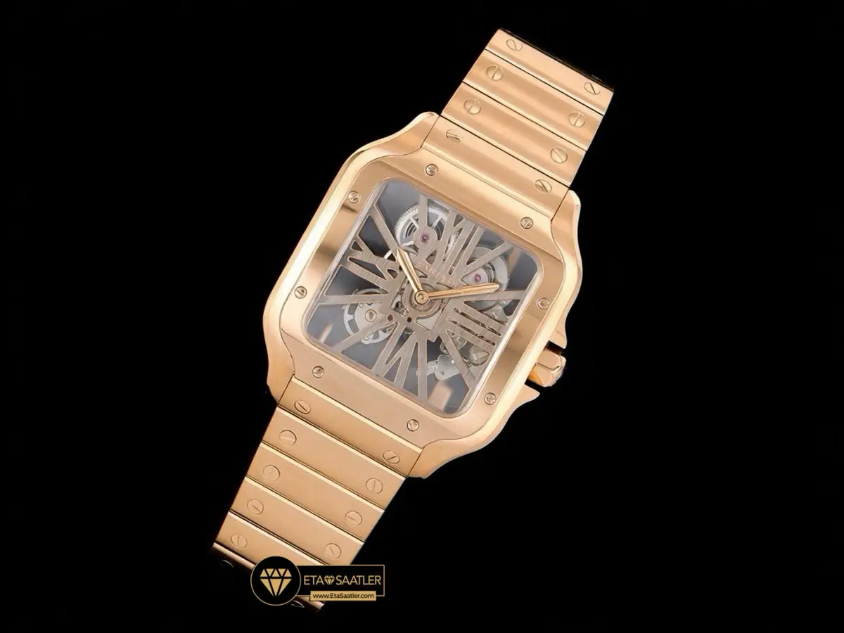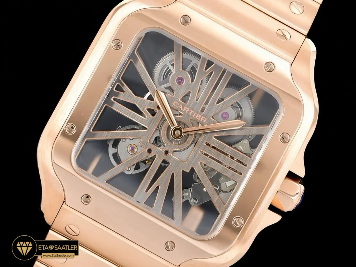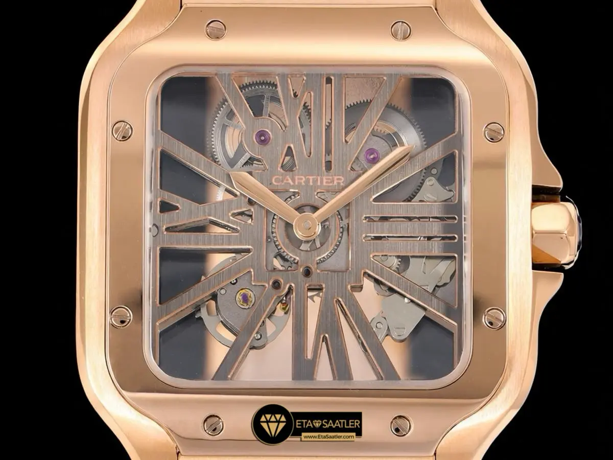 Pembe Altının Sıcak Zarafeti: RICH Factory Cartier Santos Skeleton Rose Gold