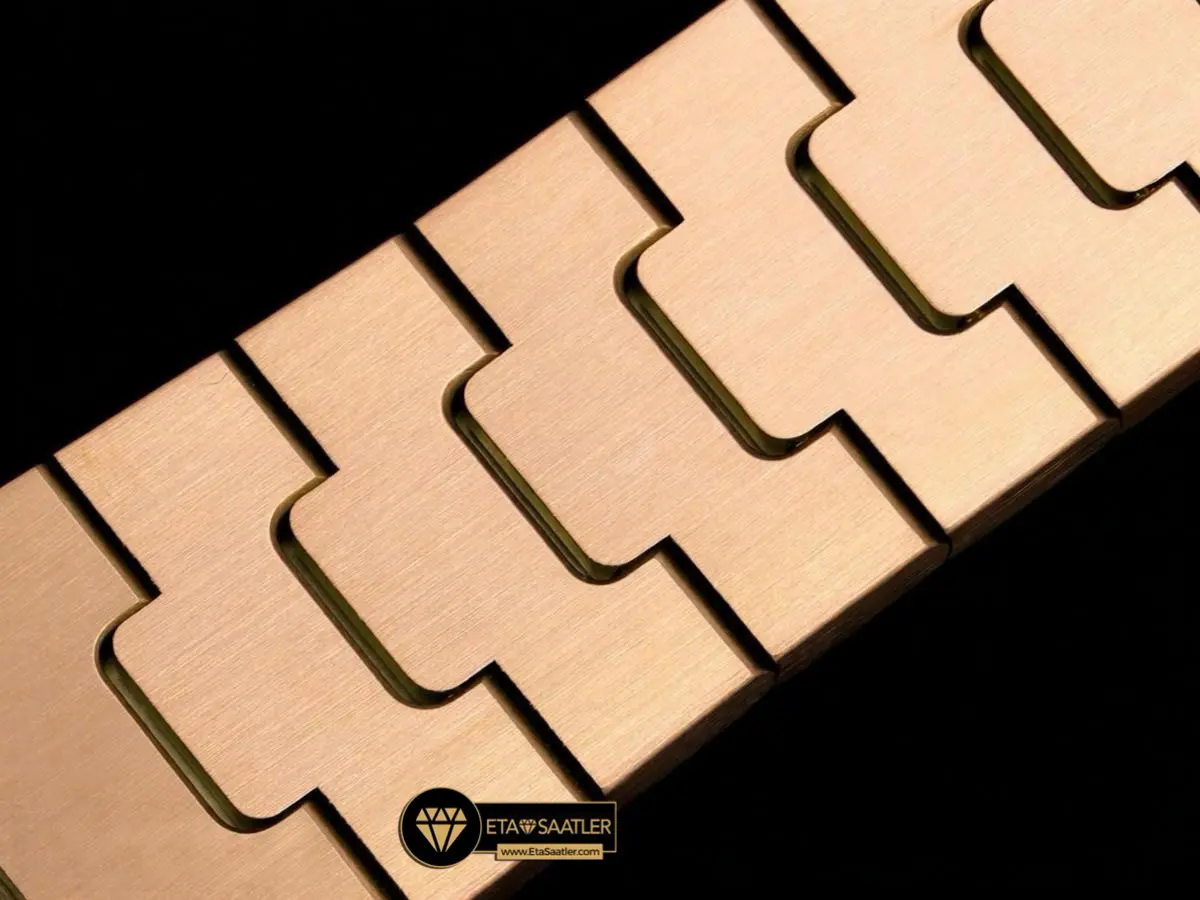 RICH Factory, orijinal saatin 3D tarama verilerini kullanarak kasa ve tüm bileşenleri milimetrik bir hassasiyetle üretmiştir. Saatin 9.10mm inceliğindeki zarif profili, bilekte orijinal modelin hissiyatını ve tokluğunu birebir yaşatır. Tamamı pembe altın kaplama olan dış yüzey, dış etkenlere karşı uzun yıllar boyunca ilk günkü parlaklığını korumasına destek olacak şekilde yüksek hassasiyetli CNC tezgahlarında işlenip titizlikle parlatılmıştır.