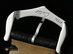 Bu modele eşlik eden siyah deri kayış, saatin klasik ve resmi havasını tamamlayan en önemli unsurdur. Derinin yumuşak dokusu ve kalitesi, bilekte gün boyu konfor sağlar. Kayışın kasaya entegrasyonu kusursuzdur ve boşluk bırakmadan şık bir bütünlük oluşturur. Çelik toka, pratik ve güvenli bir kullanım sunar.