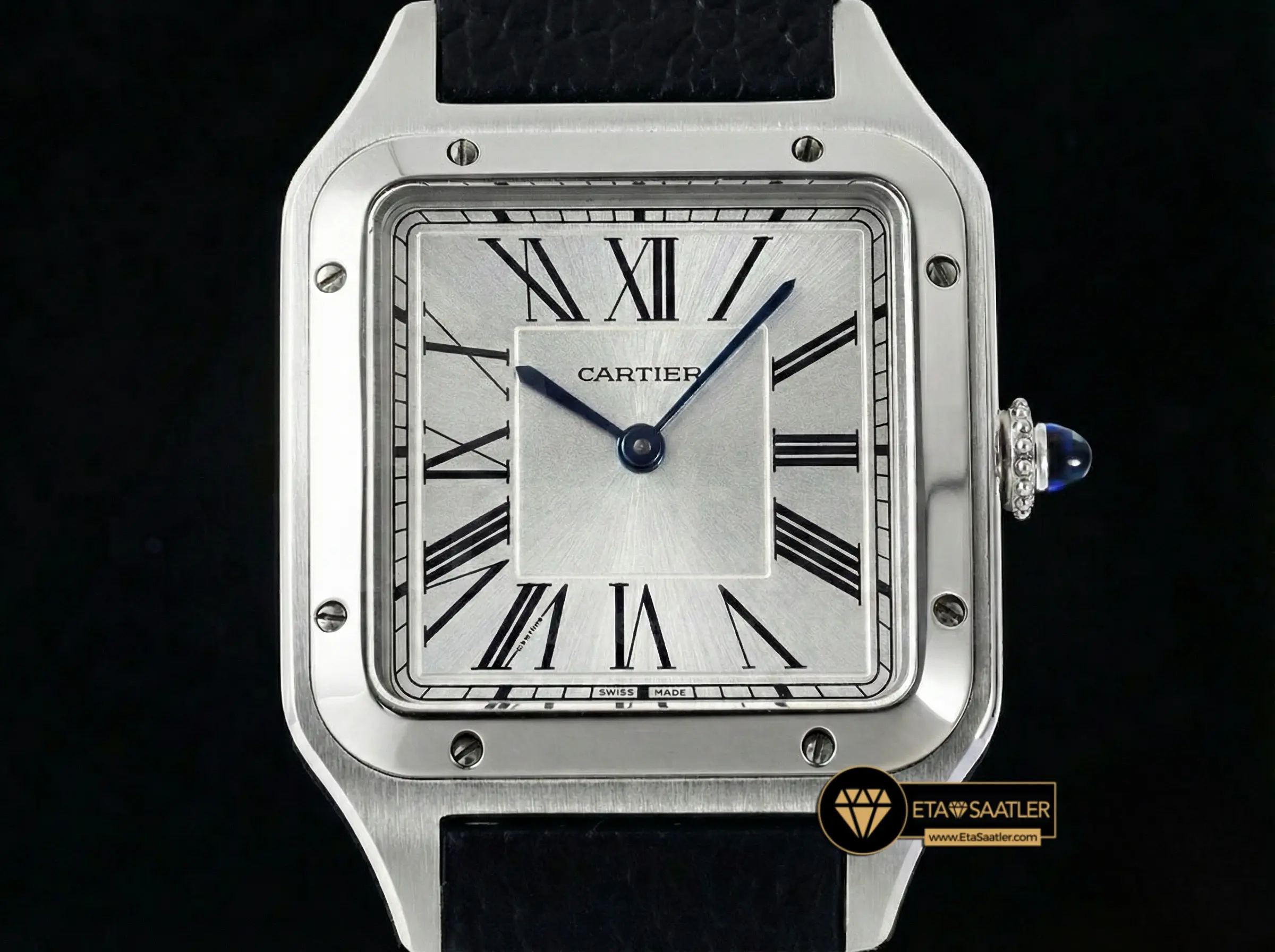 Cartier Santos Dumont Silver Dial Black Leather 27.5mm Super Clone ETA
