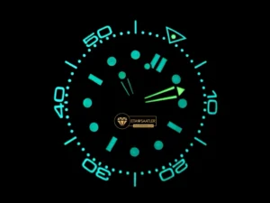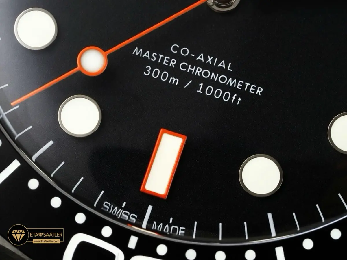 Saatin karakteristik siyah kadranı üzerinde, ışığı mükemmel yansıtan rodyum kaplama iskelet akrep ve yelkovan yer alır. Kadrana asıl ruhunu veren detay ise, saate nostaljik ve sportif bir dinamizm katan turuncu renkli “lolipop” saniye ibresidir. Kadran ve bezel üzerindeki indeksler, karanlık ortamlarda ve su altında en üst düzeyde okunabilirlik sağlayan buz mavisi fosfor (lume) ile donatılmıştır.