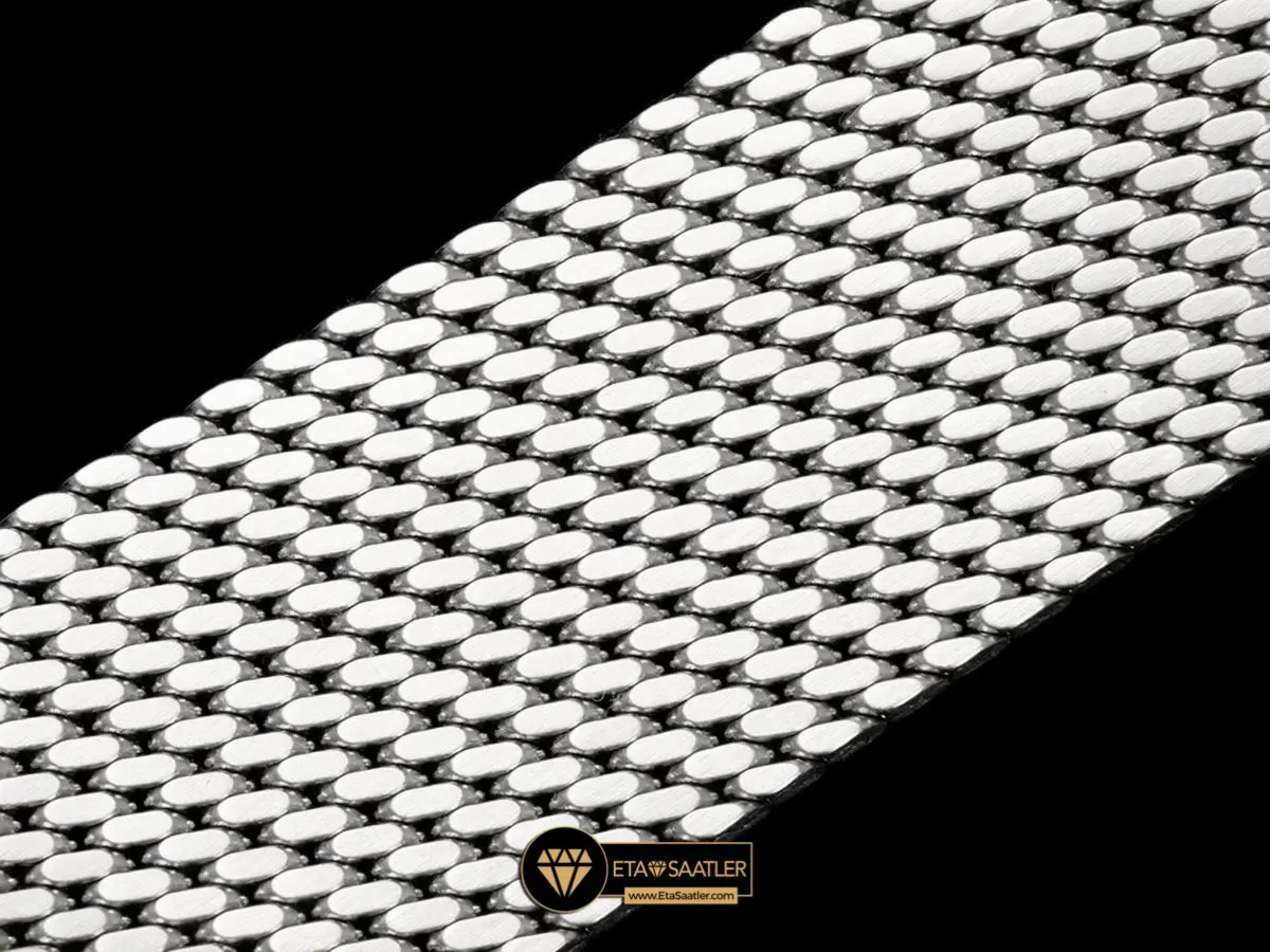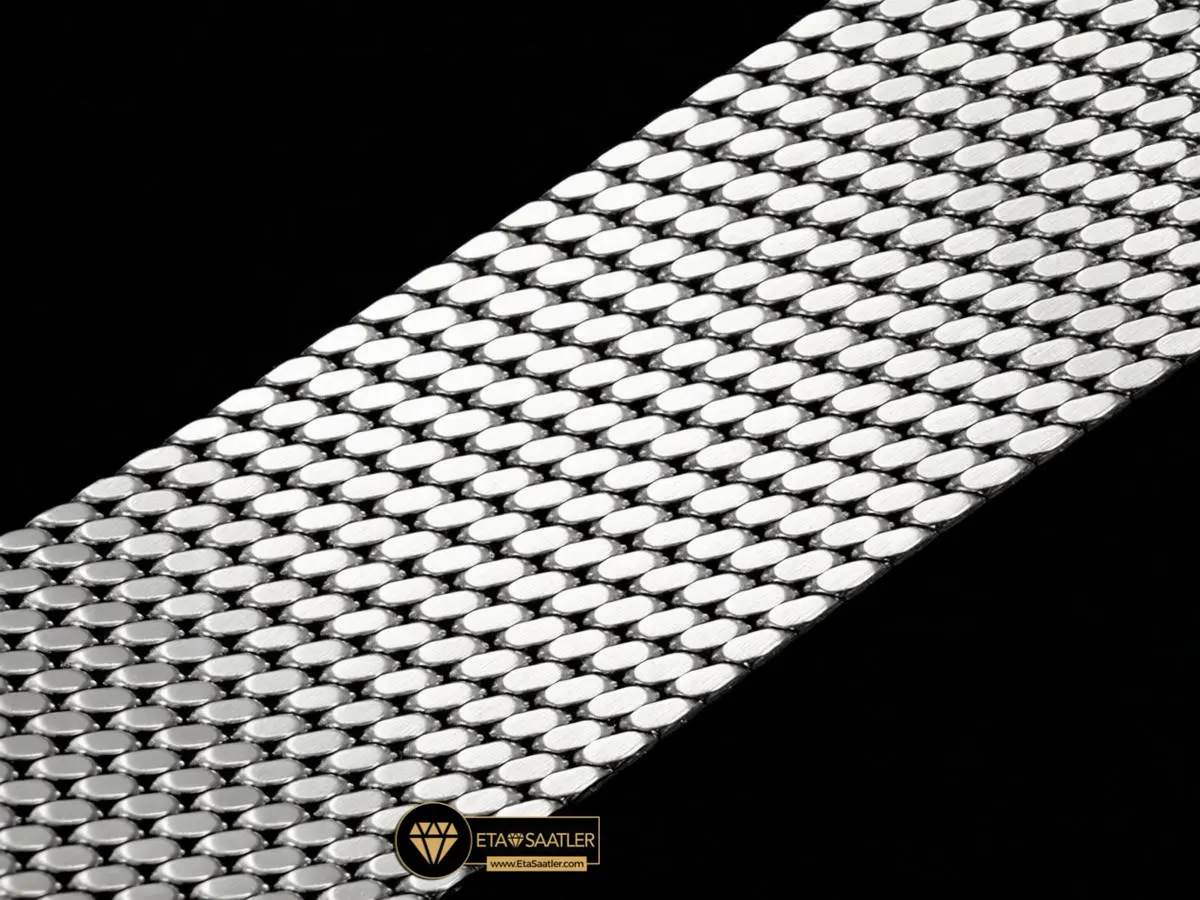 007 serisinin karakteristik askeri ruhunu ve vintage tarzını yansıtan ince dokunmuş hasır (mesh) çelik kordon, saatin estetik bütünlüğünü zirveye taşır. VS Factory‘nin yüksek hassasiyetle ürettiği bu kordon, pürüzsüz yüzeyi ve esnek yapısı sayesinde bileği nazikçe sararak gün boyu nefes alabilen konforlu bir kullanım sunar. Kordonun kasaya entegre olduğu özel bağlantı uçları (end links) ve bileğe göre pratik bir şekilde ayarlanabilen güvenli toka sistemi, orijinal tasarıma sadık kalınarak kusursuz bir uyumla işlenmiştir.