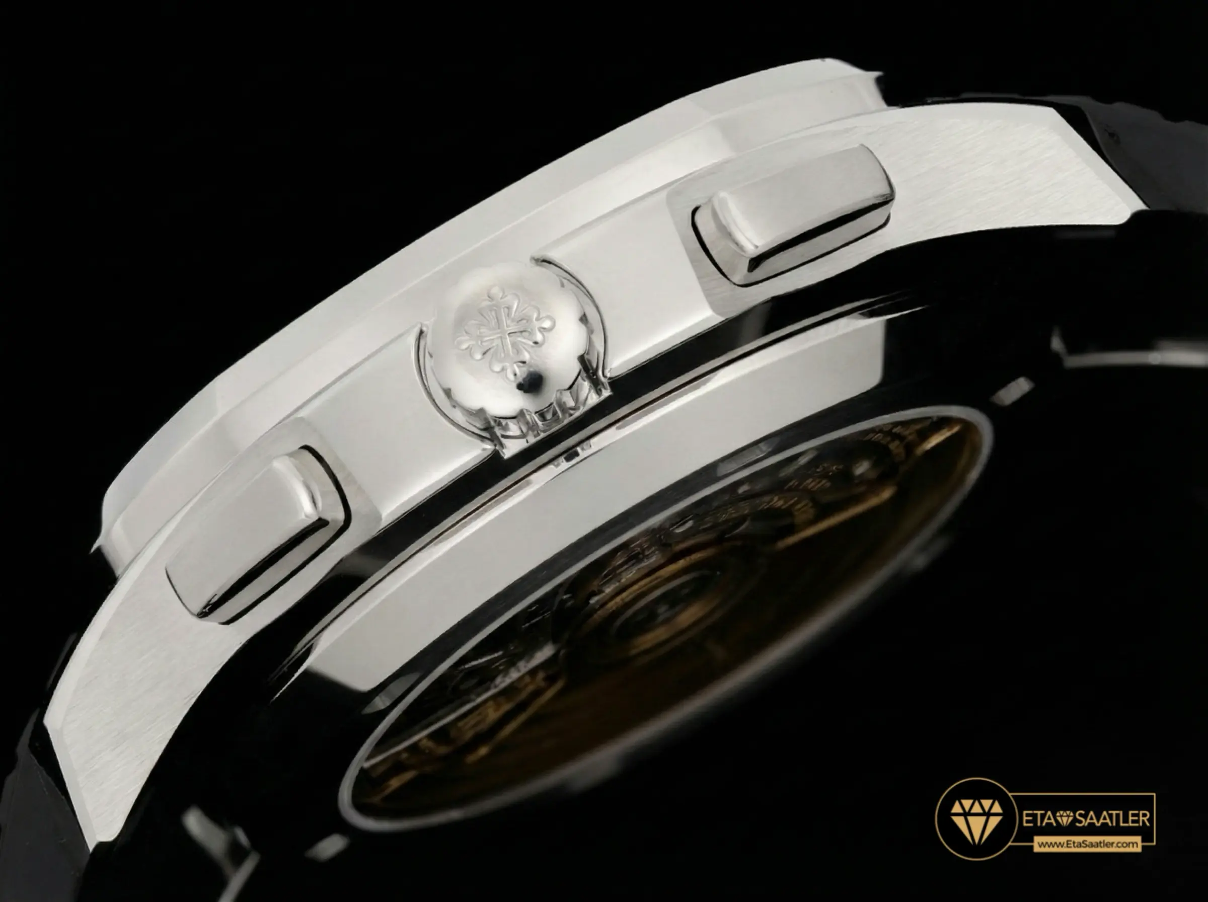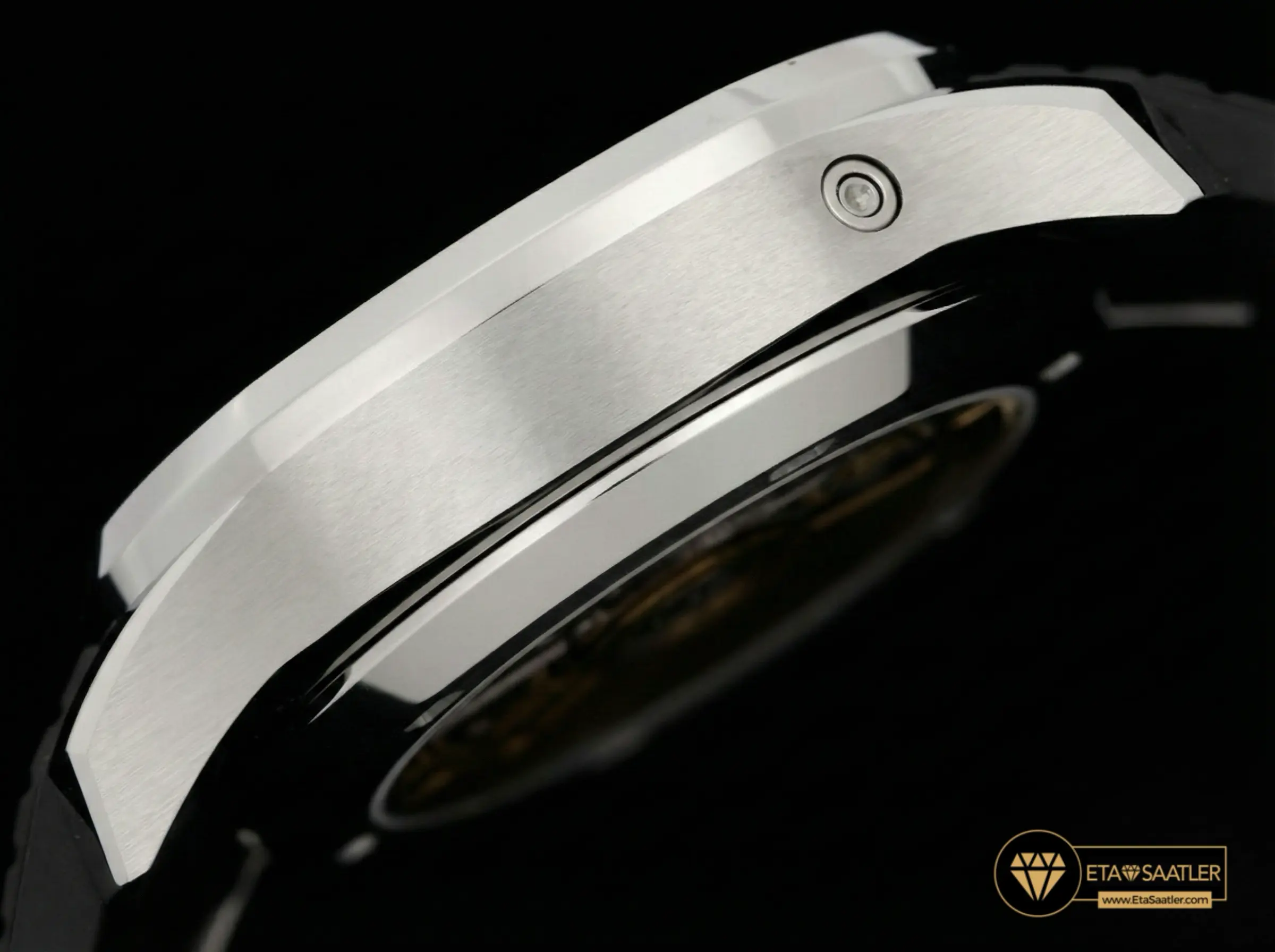 Saatin kasası, yüksek standartlarda işlenmiş paslanmaz çelikten üretilmiştir ve serinin karakteristik sekizgen yuvarlatılmış bezel yapısını taşır. Kasanın yan yüzeyindeki fırçalanmış ve parlatılmış geçişler, ışığı mükemmel bir şekilde yansıtır. P1 Factory, bu modelde kasanın yan tarafına konumlandırılan tarih hızlı ayar butonunu (date quick adjust button) orijinalindeki gibi tam işlevsel ve hassas bir şekilde tasarlamıştır. 12.5mm’lik ince profil, bilekte konforlu bir kullanım vaat eder.