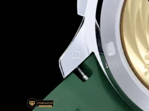 Bu modelin kasası, 42.2mm çapında ve 12.5mm inceliğinde olup orijinal boyutlara sadık kalınarak üretilmiştir. Kasanın en belirgin özelliği, standart paslanmaz çelikten çok daha parlak ve beyaz bir yansımaya sahip olan beyaz altın kaplama yüzeyidir. Bu işlem, saate ekstra bir prestij ve ağırlık hissi katar. Kasanın yan tarafında, P1 Factory tarafından işlevsel hale getirilen tarih hızlı ayar butonu (date quick adjust button) bulunur; bu detay kullanım kolaylığını zirveye taşır.