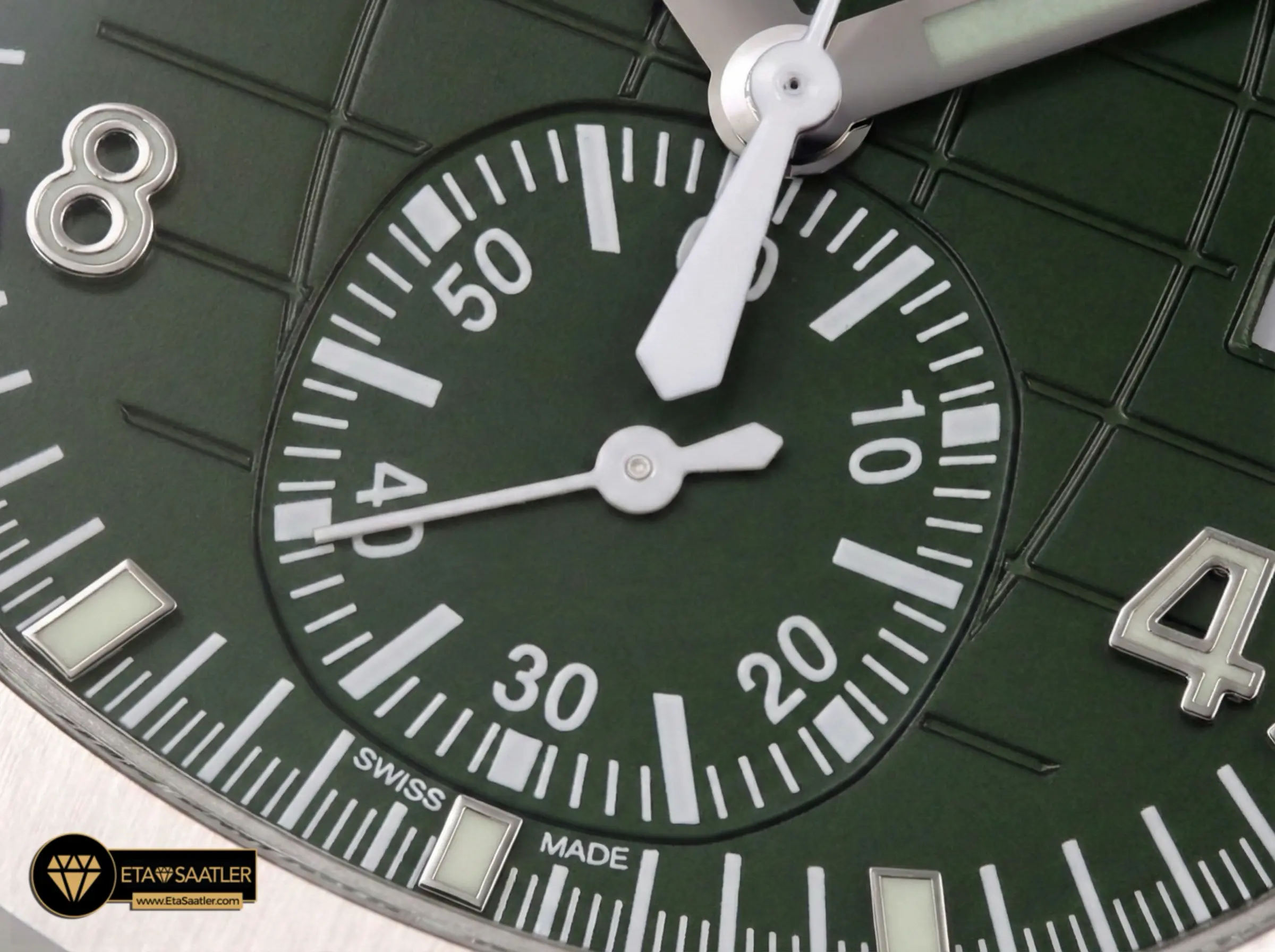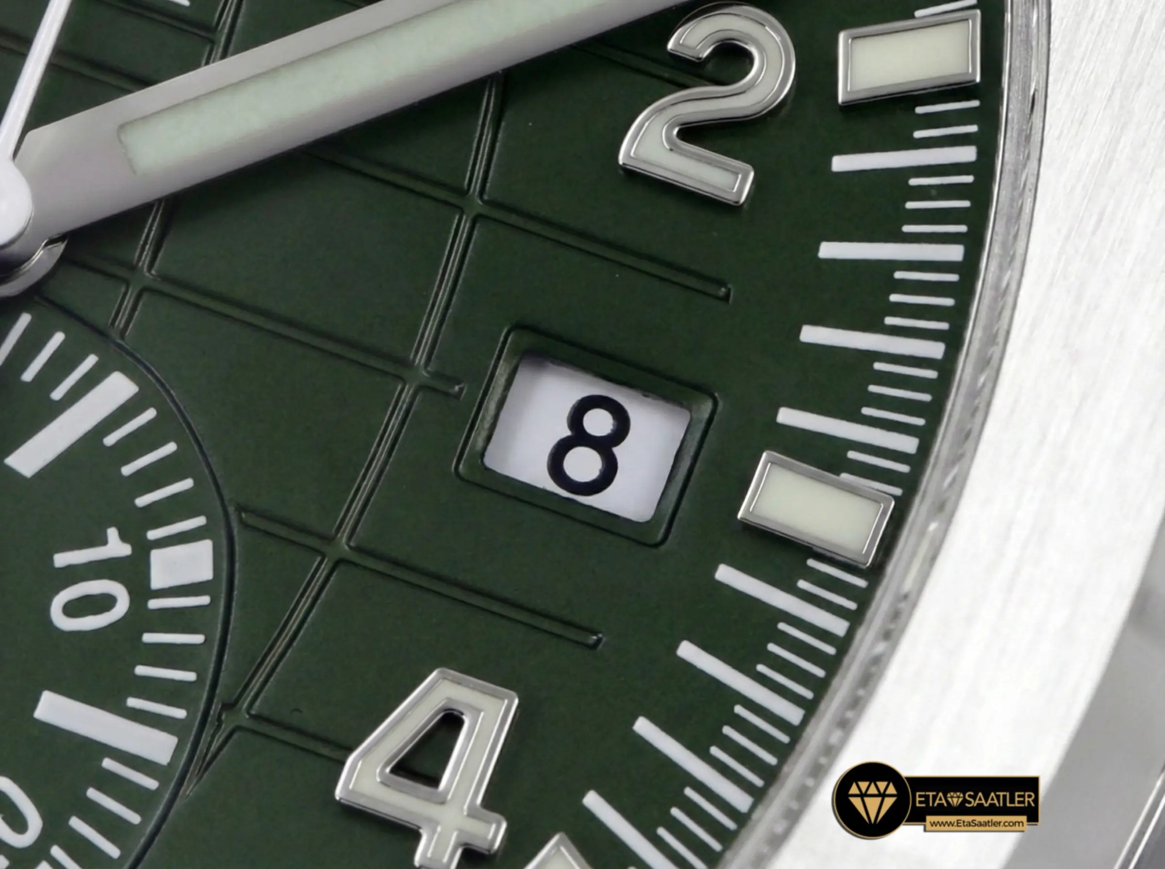 - İsviçre Sınıfı Superlume İğnelerle Çubuk İşaretli Degrade Green Parçalı Kadran