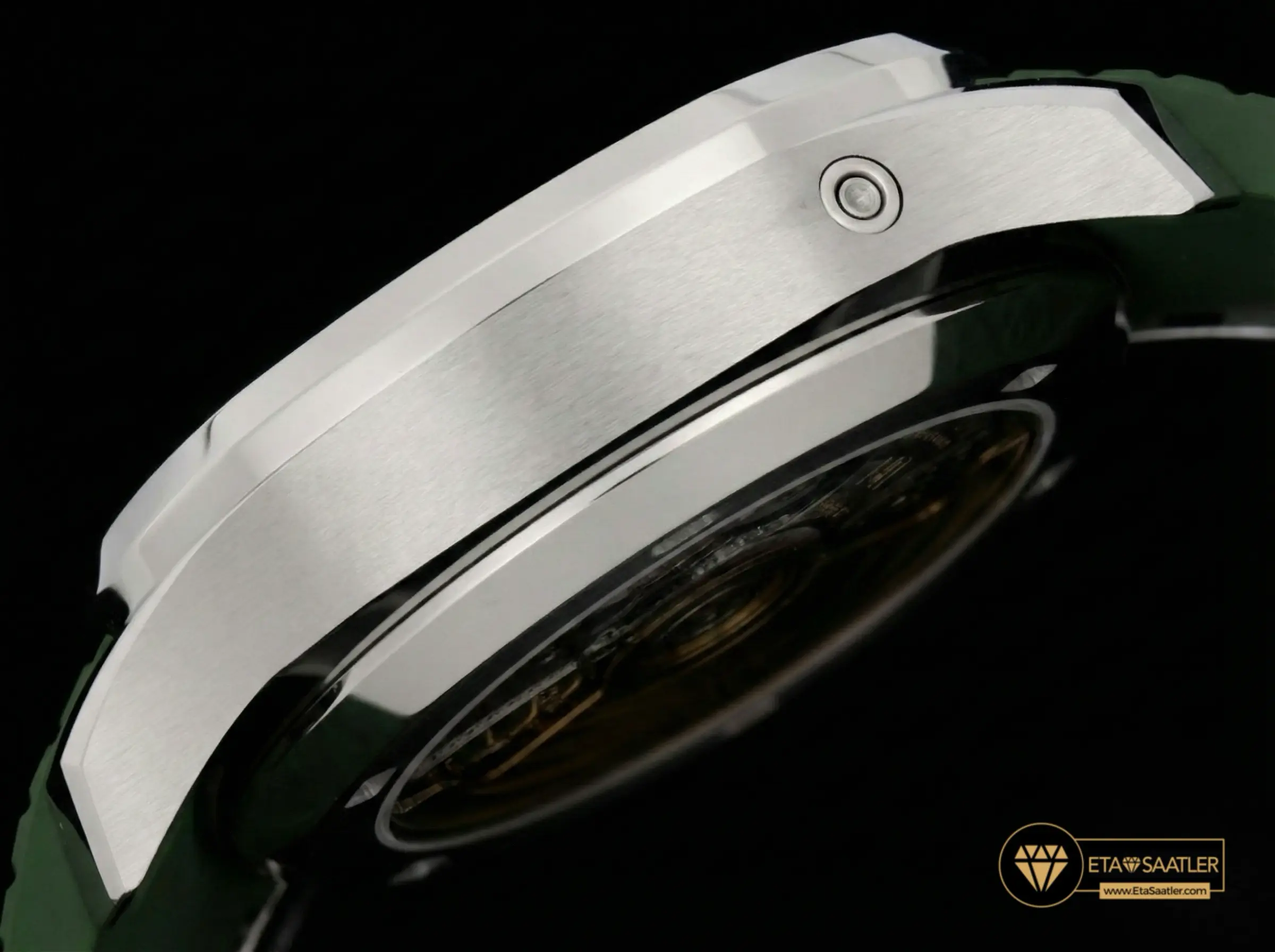 Patek Philippe’in modern klasiği Aquanaut, P1 Factory‘nin en yeni “White Gold Edition” serisiyle haki yeşilin büyüleyici dünyasına adım atıyor. Standart çelik modellerden farklı olarak, bu versiyon beyaz altın kaplama (white gold plated) kasasıyla çok daha parlak ve göz alıcı bir duruş sergiliyor. Haki yeşil (Khaki Green) kadran ve kayış kombinasyonu, saate maceracı ama bir o kadar da sofistike bir karakter katıyor. P1 Factory, uzun süren Ar-Ge çalışmaları sonucunda ortaya çıkardığı bu modelle, lüks spor saat kategorisinde standartları yeniden belirliyor.
