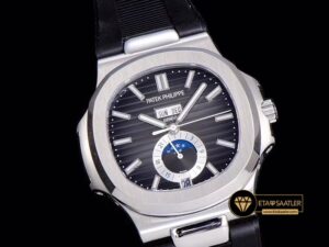 Patek Philippe Nautilus GMT MoonPhase Kauçuk Kordon Çelik Kasa Gri Kadran ETA Saat Özellikleri