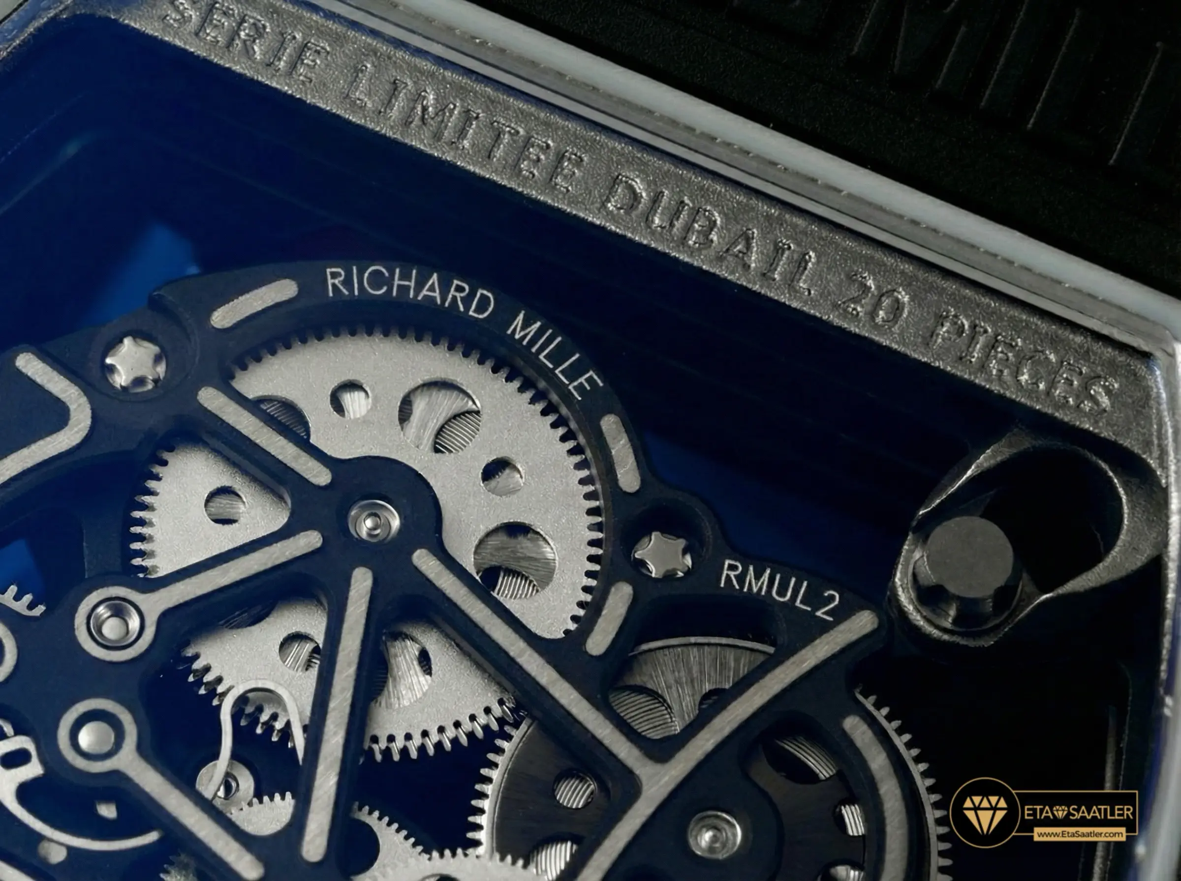 Richard Mille RM 055‘in kalbinde, **UMI Stüdyo** tarafından özel olarak geliştirilen **Superclone RMUL2 “Balanssız” (Free-Sprung) entegre mekanizması** yer alır. Bu mekanizma, orijinal RMUL2 kalibresinin tüm fonksiyonlarını, görünümünü ve yüksek performans özelliklerini birebir taklit etmek üzere tasarlanmıştır. Üreticinin de belirttiği gibi, **her bir dişli çarkı, her bir vida, her bir köprü ve plaka**, orijinalin özünü ve ruhunu maksimum düzeyde yansıtmak için **özel işlemlerden** geçirilmiştir. **Balanssız (free-sprung)** sistem, mekanizmanın şoklara karşı direncini artırırken, zaman tutma hassasiyetini de önemli ölçüde iyileştirir. Manuel kurmalı bu mekanizma, saatin ultra ince yapısını korur ve mekanik sanatın tüm detaylarını gözler önüne serer. UMI Stüdyo’nun bu klon mekanizmadaki hassasiyeti, saatinizin sadece dış görünüşüyle değil, aynı zamanda iç işleyişindeki üstünlükle de size güvenilir ve lüks bir deneyim sunar.