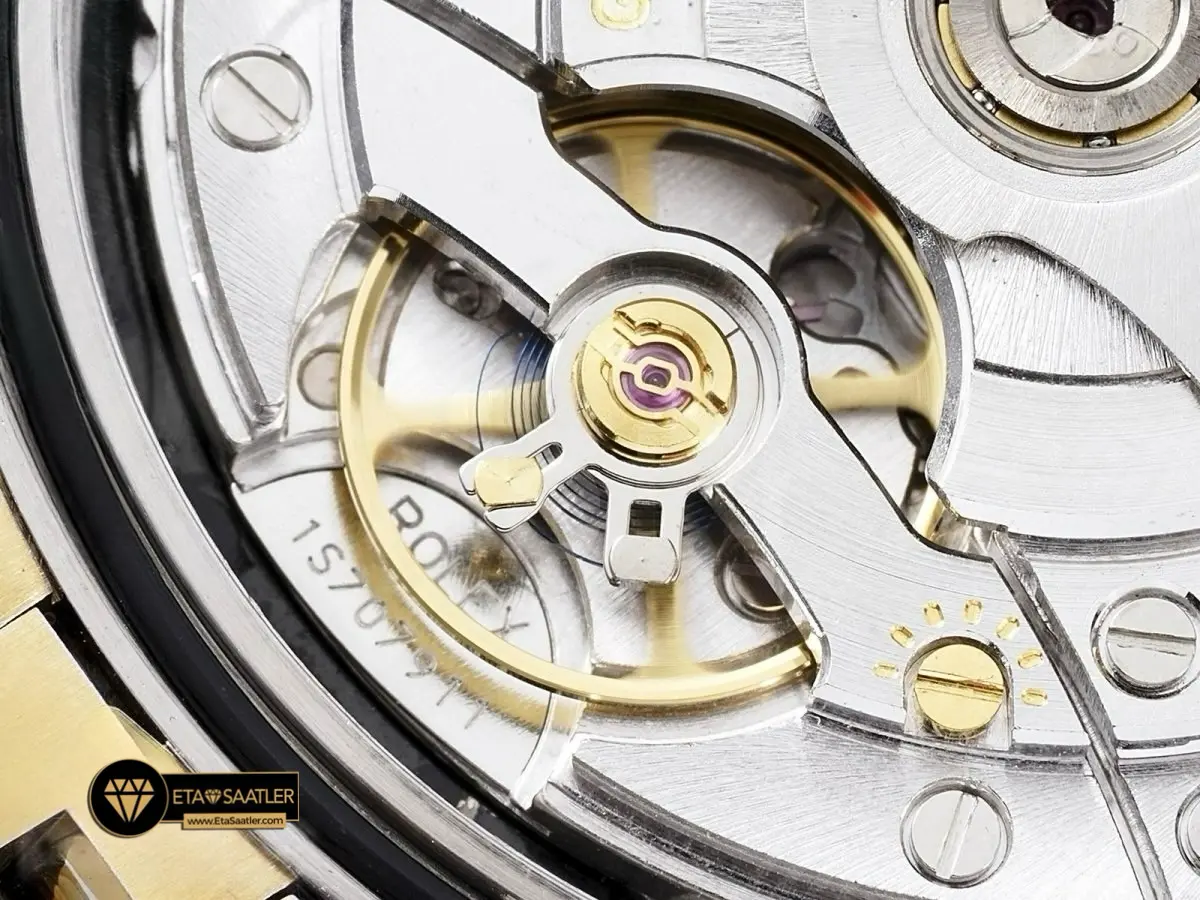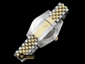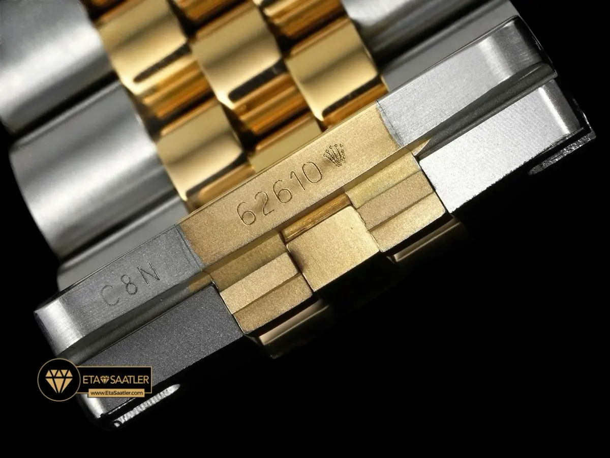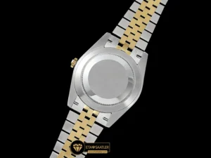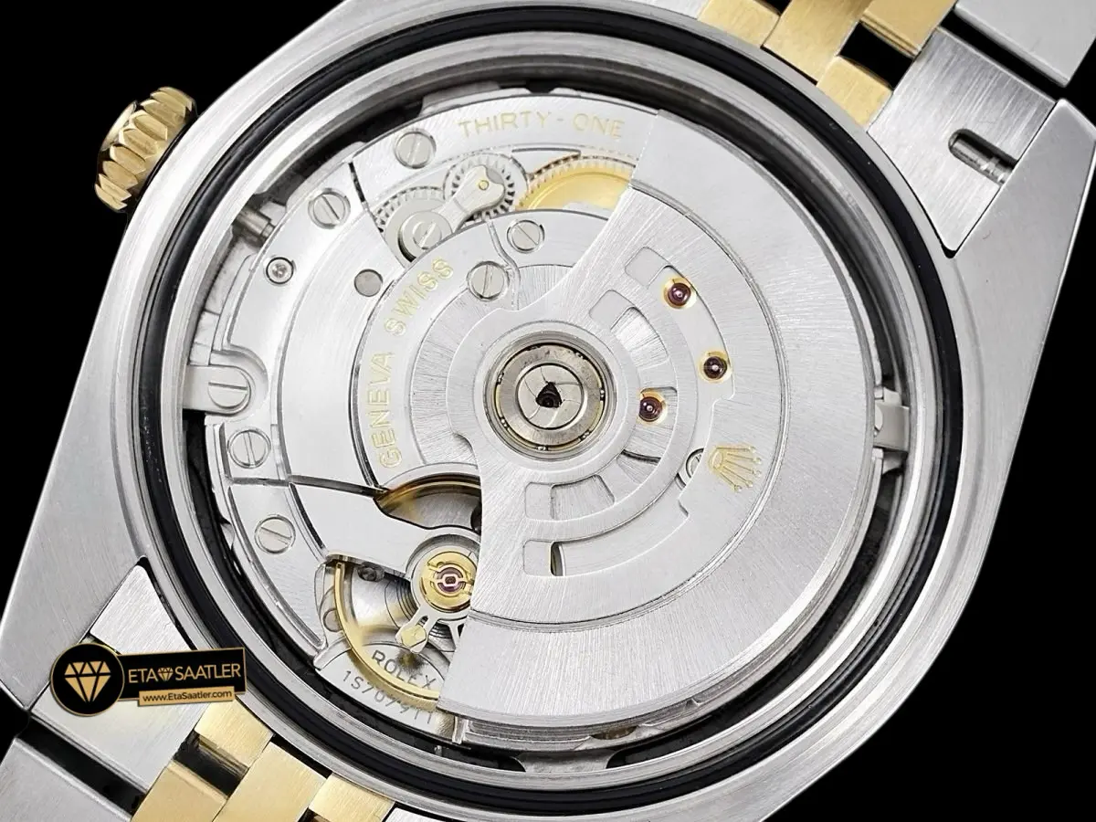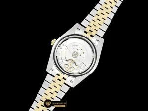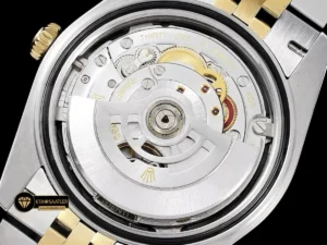 Rolex Datejust 126333 Siyah Kadran‘ın kasası, Rolex’in en popüler materyali olan Rolesor estetiğini yansıtan, Oystersteel ve **yüksek micron altın kaplamanın** zarif bir birleşimidir. 41mm’lik ideal kasa çapı, modern bir saat beklentisini karşılar ve bilekte güçlü ama dengeli bir varlık hissi yaratır. Kasanın yüzeylerindeki özenli saten fırçalanmış ve cilalı bitişlerin ustaca geçişleri, çeliğin sağlamlığını ve altının sıcak ışıltısını sergiler. Bu modelin en belirgin özelliklerinden biri olan **yivli (fluted) bezeli**, ustalıkla uygulanmış **yüksek micron altın kaplamaya** sahiptir ve her harekette ışığı yansıtarak saatin göz alıcı bir parlaklık kazanmasını sağlar. Yivli bezel, Rolex’in ayırt edici özelliklerinden biri olup, markanın klasiğini ve lüksünü temsil eder. Triplock kurma kolu sistemi, saatin su geçirmezliğini garanti altına alırken, kasanın sağlamlığı ve ergonomik yapısı, günlük kullanımda maksimum konfor sunar. VSF Factory‘nin bu kasadaki işçiliği, orijinalindeki Rolesor oranlarını, malzeme bitişlerini ve yivli bezelin kusursuz parlaklığını birebir yansıtır.
